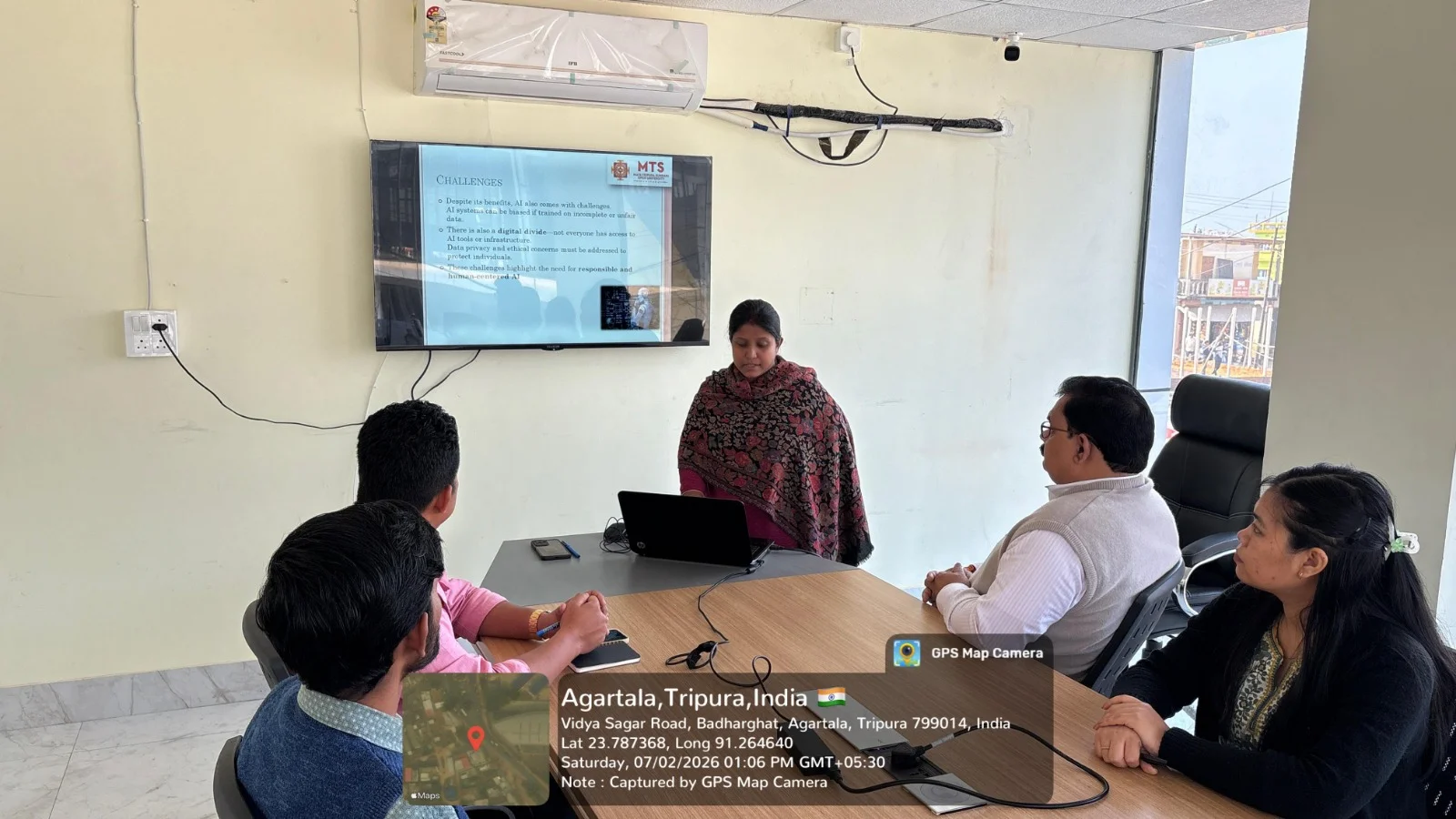 The session commenced with an introductory address highlighting the relevance of AI in contemporary society and its growing influence across various social sectors. The speaker, Ms. Dipanwita Das, delivered an insightful and well-structured presentation focusing on how AI-driven innovations can be leveraged to bridge social gaps and promote inclusive development.